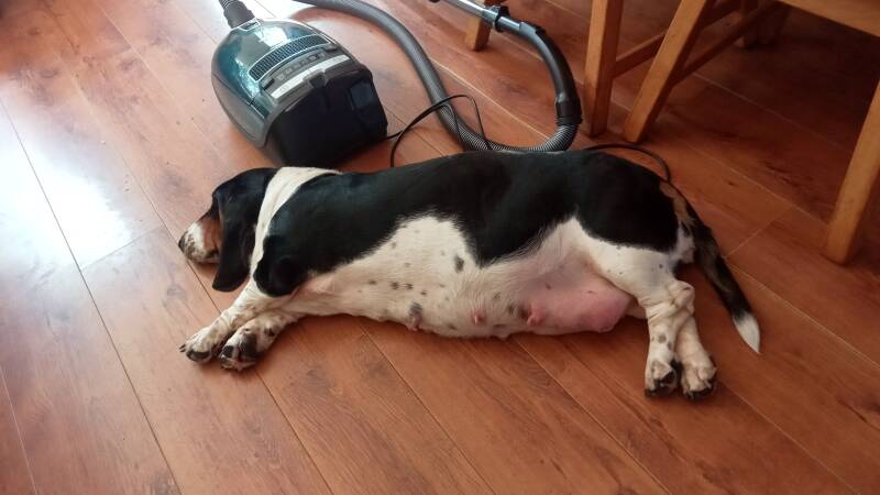 Aangezien Flash heerlijk koel op het laminaat lag te tukken betekende het geen stofzuigen voor mij.Lucky me 😂